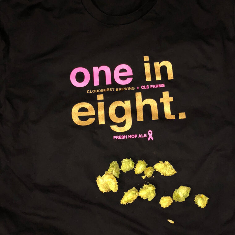 YES! Our FIRST of most likely eight wet hop beers this season! We used 600 pounds of Day 1 harvest Centennial hops from CLS Farms. The ritual of brewing wet beers is an inherently personal experience between brewer and farmer, and every year, the bonds between us grow stronger. Last harvest found Shelley Desmarais of CLS Farms in the middle of her second battle with breast cancer. We were moved to hear her story with the disease and inspired by her positive, “FUCK CANCER” attitude. This harvest, we came back to find Shelley healthy – kicking cancer’s ass a second time! – While at the same time, Steve’s mom had just been diagnosed with the same disease. It turns out,1 in 8 women will be diagnosed with breast cancer in their lifetime. So, we decided to make this first wet hop beer of the season count – Cloudburst will donate $1 of every pint sold in the tasting room to the Wellness House in Yakima, a non-profit that provides healthcare services to women and families in the Yakima Valley. CLS Farms will also make a donation on every wholesale keg sold outside the tasting room.