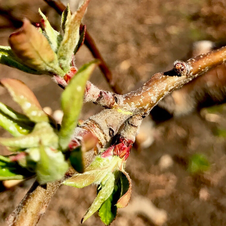 Old roots, new growth on a Pink Lady apple tree